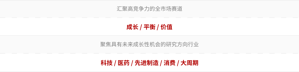 精品股票策略將覆蓋全市場賽道、行業(yè)賽道、大周期股債聯動投研團隊,并深化對科技、醫(yī)藥、消費、先進制造、大周期最能代表中國經濟發(fā)展方向的基本面研究。