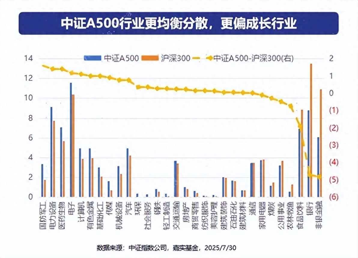 按照指數(shù)編制方法,中證A500指數(shù)從滬深各行業(yè)選取市值較大、流動(dòng)性較好的500只證券作為指數(shù)樣本,反映全市場(chǎng)各行業(yè)最具代表性上市公司證券的整體表現(xiàn),既覆蓋傳統(tǒng)產(chǎn)業(yè)龍頭,也囊括較高比例的新興產(chǎn)業(yè)領(lǐng)軍者,是全面刻畫(huà)中國(guó)經(jīng)濟(jì)高質(zhì)量發(fā)展圖景的獨(dú)特標(biāo)識(shí)。