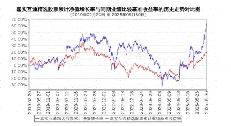 數(shù)據(jù)來源:基金三季報,截至 2025/9/30。過往業(yè)績不預(yù)示其未來業(yè)績,基金管理人管理的其他基金業(yè)績不構(gòu)成本基金業(yè)績的保證。嘉實互通精選成立于2019/2/20,馮彥芷 2019/2/20-2020/6/30,陳葉楠 2019/2/20-2023/7/11,鄭偉 2016/3/14 -2023/11/22,楊歡 2022/7/6管理至今。近五年收益及比較基準(zhǔn):2020(20.34%/12.20%)、2021(7.34%/-7.53%)、2022(-10.96%/-16.34%)、2023(-22.20%/-10.53%)、2024(0.51%/15.86%)。